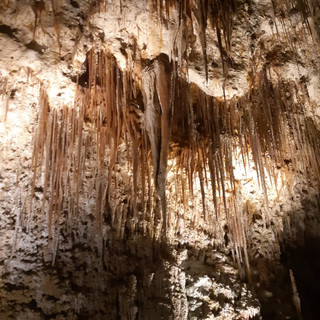 אנחנו מבקרים במערות קרלסבד. Carlsbad caverns זה סטייל מערת נטיפים,אבל... ענקית. עצומה. ירדנו 75 קומות למתחת לאדמה במעלית. וצעדנו במסלול נטיפים מדהים. בהחלט חוויה. ליבי צעדה שני קילומטרים ברגל. מצויידת בפנס. זה בהחלט החלק שהיא חיכתה לו כל הטיול.