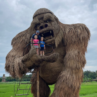 מטיילים ומצטלמים ליד פסלים של יצורים ענקיים, צועדים בשדות, יושבים לאכול במסעדה, שהשולחנות שלה הם ביתנים על המים, ויש גשר במבוק קטן כדי להגיע לביתו מבלי ליפול למים.